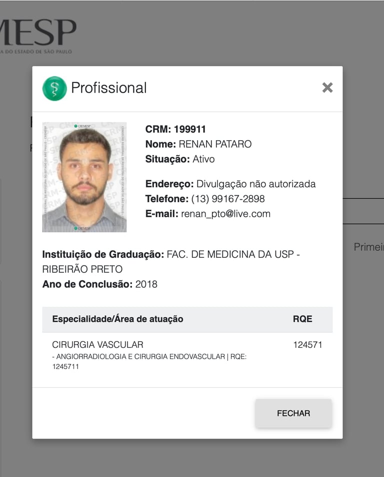 Sou Dr. Renan Pataro, médico vascular em Santos-SP, dedicado a orientar e cuidar do seu bem-estar vascular com ética e ciência.